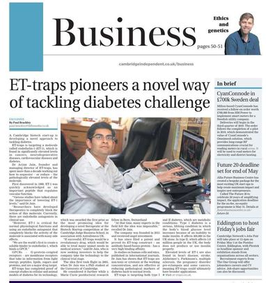 Work on ET-traps published in the Business section of Cambridge Independent on 1st May 2019. Read more